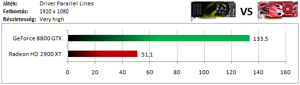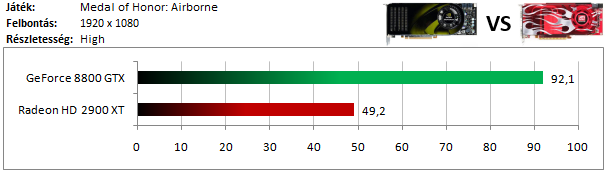 A 8800 GTX érdekes módon nem szenvedett annyira ebben a játékban, mint modernebb testvére, és jócskán megelőzte a 2900 XT-t, visszaállítva a papírformát.