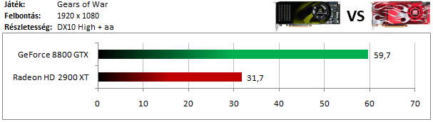 A HD 3870 megelőzi a papíron jóval erősebb 9800 GTX-et ebben a játékban, ami még úgy is megsüvegelendő teljesítmény, hogy XBOX360-as átiratról lévén szó, ez a játék egyértelműen a Radeon-oknak fekszik jobban.