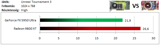 A 9800 XT előnye ezúttal kisebb a megszokottnál az FX 5950 Ultra-val szemben, de természetesen így is behúzta ezt a győzelmet.