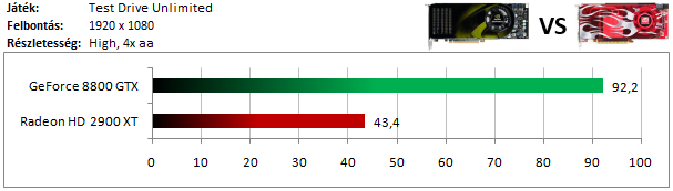 Az év legerősebb GPU-i számára természetesen nem okoz problémát a játék maximális részletességgel való futtatása. A 9800 GTX előnye a komplex grafika ellenére is tetemes.