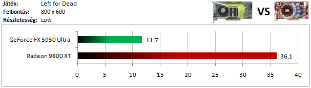 A 9800 XT-vel még játszható sebességet kapunk a legalacsonyabb minőségi szinten, de az FX-szel erre esélyünk sem lesz.