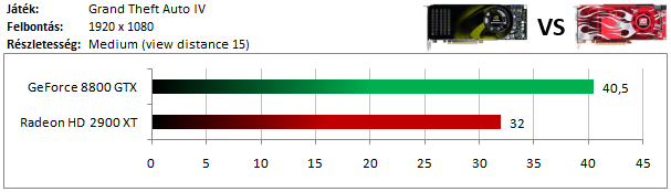 Az 512 MB-os kártyákkal már csak 15%-os látótávolságot engedett beállítani a játék, és az egyéb opciókat is közepes szintre kellett visszavenni. A HD 3870-et még ez a minőségi szint is megviselte, de a 9800 GTX-szel szépen futott a játék.