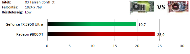Az X850 Pro-val egyszerűen csak lefagy a játék, de a 6800 GS által nyújtott teljesítményben sem lesz sok örömünk, ugyanis messze van a játszhatónak nevezhető sebességtől a legalacsonyabb részletesség mellett is.