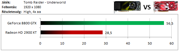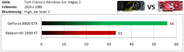 Nem teljesít sokkal jobban a HD 2900 XT sem, mely szintén nem képes játszható sebességet adni a tesztelt beállítások mellett.