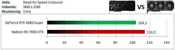 Az RX 7900 XTX ezúttal is legyőzi a 4080 Super-t, de mindkét versenyzővel bőven 100 FPS feletti sebességet kapunk 4K felbontásban.