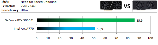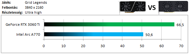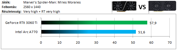 Az Intel Arc széria driverét nem igazán sikerült jól optimalizálni erre a játékra, így hatalmas vereséget szenved a 3060 Ti-tól.