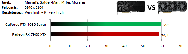 4K felbontásban az RX 7900 XTX nyerte a tesztet, természetesen a felbontás-felskálázó algoritmusok ezúttal is ki voltak kapcsolva.
