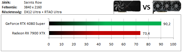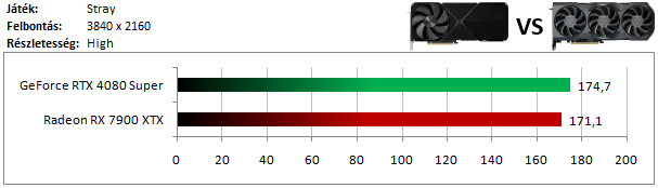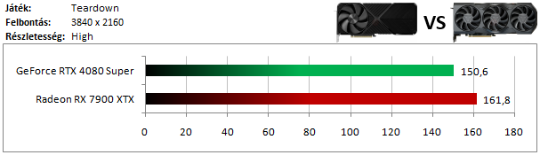 Az RX 7900 XTX megverte az RTX 4080 Super-t ebben a tesztben, de mindkét kártyával bőven 100 FPS feletti sebességet kapunk 4K felbontásban.