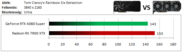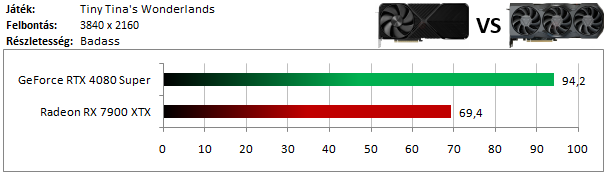 Az RTX 4080 Super jócskán megveri az RX 7900 XTX-et annak ellenére is, hogy a Raytracing ezúttal nem kerül képbe.