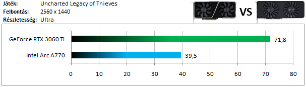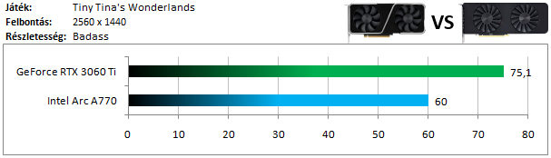 Az Arc A770 a szokásosnak mondható mértékben kap ki a 3060 Ti-tól.
