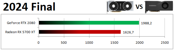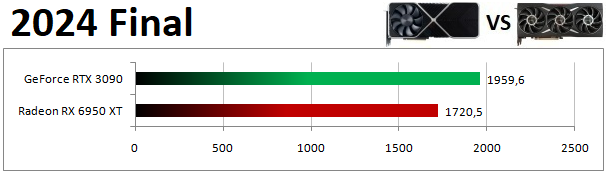 A 4080 Super kis mértékben növelni tudta összetettbeli előnyét idén a 7900 XTX-hez viszonyítva, köszönhetően annak, hogy egyre masszívabb Raytracing használatú játékok jelentek meg. Bár a Radeon néhány hagyományosabb renderelési módot alkalmazó cím alatt továbbra is meg tudta szerezni a győzelmet, de az ilyen grafikai motorok egyre inkább elavultnak fognak számítani a jövőben, és használatuk előbb-utóbb kikopik.