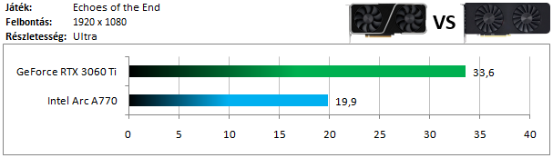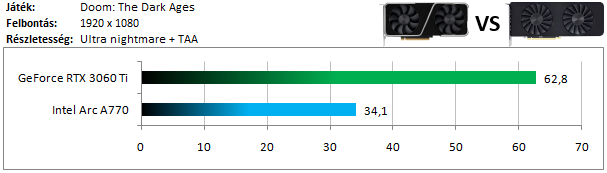 Az Intel kártyáját ez a játék sem kedveli, hiszen nagyon kikapott a 3060 Ti-tól.