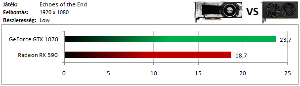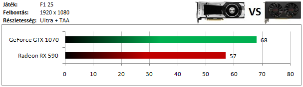 Az előző eredményt látva meglepő az RX 590 viszonylag jó szereplése a GTX 1070 ellen.