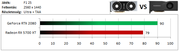 Az 5700 XT jól érzi magát ebben a játékban, és a szokottnál közelebb kerül a 2080-ashoz.