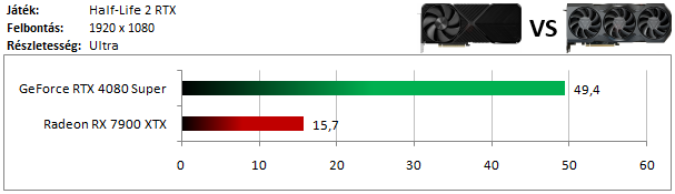Bár az AMD kártyáival is elindul a játék, de keserves sebességgel fut, amin nem is lepődhetünk meg, hiszen NVIDIA gyártóspecifikus eszközökkel lett fejlesztve. DLSS nélkül azonban még a 4080 Super-rel is csak Full HD felbontásban kapunk értékelhető sebességet.