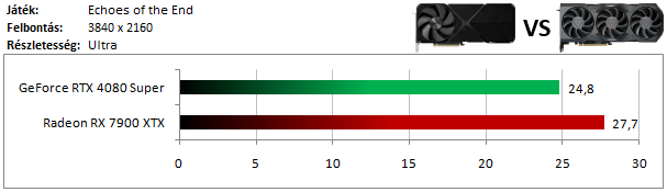 A legerősebb kártyák sem képesek játszható sebességet elérni 4K felbontásban, de közülük a 7900 XTX bizonyult gyorsabbnak.