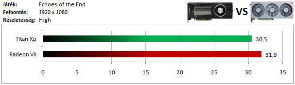 Egy újabb játékot láthatunk, ahol a Radeon VII kis mértékben meg tudta előzni a Titan Xp-t.