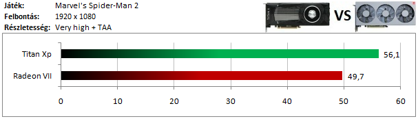 A Radeon VII nem tudja folytatni az AMD kártyák jó szereplésének sorát, és kikap a Titan Xp-től.