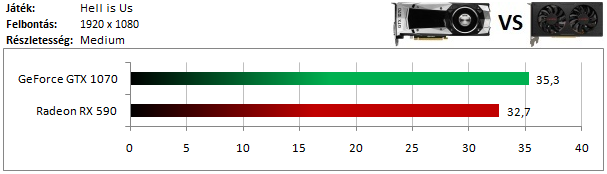 Kiválóan szerepel az RX 590 is, hiszen a szokottnál sokkal kisebb a lemaradása a GTX 1070 mögött.