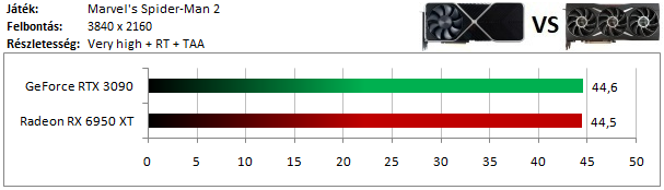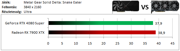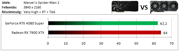 A 7900 XTX kicsivel gyorsabbnak bizonyult a 4080 Super-nél, de mindkét kártya erősen szenved maximális részletesség mellett.
