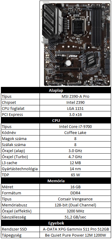 A Win10-es tesztrendszer a nagycikk második részéből már ismert, és ezúttal is tökéletesen megbízhatóan szolgáló 8 magos i7-en alapuló konfiguráció lett, a különbség csak annyi, hogy ezúttal egy leheletnyivel gyorsabb RAM-okat kapott.