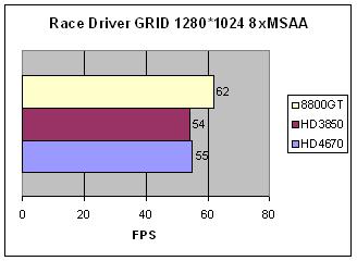 A teszteket 1280*1024-es felbontáson végeztem először szűrők nélkül, majd 4x AA mellett, GRID esetében a szűrők nélküli mérést elhagytam, inkább a 4x és a 8x közötti különbséget próbáltam szemléltetni (nem volt egyszerű).