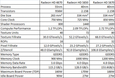 A HD5870-es feature listája: