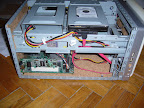 Először is beszereztem a szükséges hardvereket. Alaplapot boltból, házat sikerült Vaterán találnom egy megfelelőt, bár kicsit nagyobb, mint amire gondoltam, de 3 700 Ft-ért van benne 2 db rezgéscsillapitott 3,5”-os hely, kártyaolvasó (bár egyelőre ezt nem használom). Memória, HDD a másik gépemből ment át bele, hálókártya meg volt kéznél egy. Hangszigetelésnek vettem egy csomag parafát (5 db 0,3 cm x 30 cm x 60 cm kb. 2 000Ft) aminek a feléből parafatábla készült, a másik fele került be a gépbe.