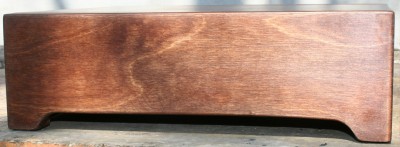 A nyír-t páccal színeztem. Vízalapút választottam dió színben. A jó időnek hála gyorsan megszáradt a pác, de a víz miatt kicsit felhúzta a fa szálait, tehát ismét finom csiszolás következett. Itt már eléggé kezdtem unni a csiszatolást, de a szépségért meg kell küzdeni.