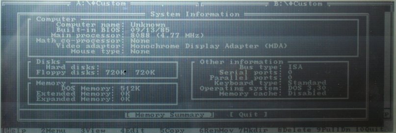 Az XT belső akkoriban nem számított elavultnak, de az AT (286-os) már másfél éve piacon volt. Valószínűleg az ár és a fogyasztás kordában tartása miatt maradtak a 80C88-as processzornál. A Norton Commander szerint a következő eszközökkel van ellátva a gépezet: