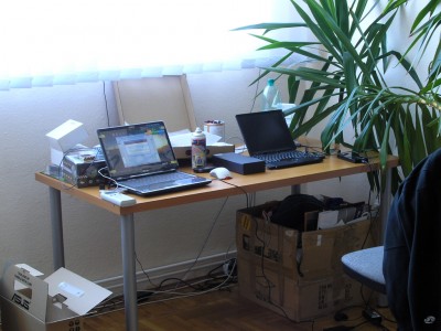 Az asztalával szemben a bejárati ajtó mellett furcsa esernyők, meg jó erős fényforrások láthatók, amelyek segítségével készülnek a tökéletes fényképek, azt is jól megnézhettem, hogy is készülnek a tesztelt hardverekről a profi képek, de arról galád módon most nektek nem mutatok képet.
