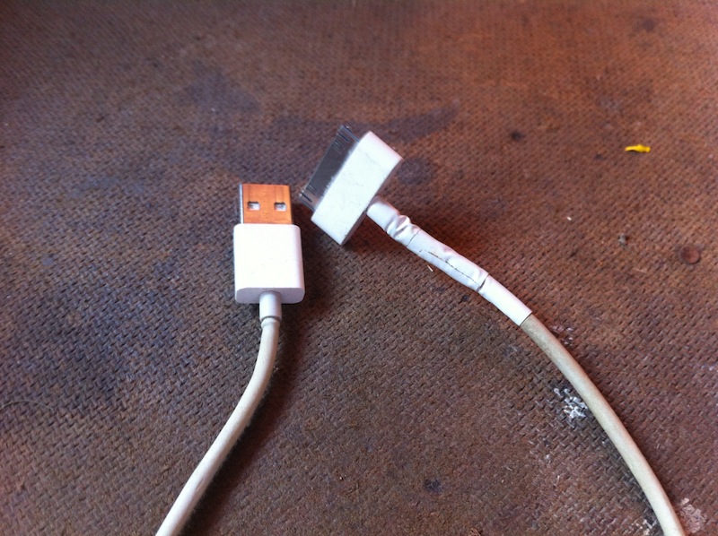 Igazából azért is ugrottam neki a dokkoló készítésnek, mivel még a 3GS-em adatkábelén a burkolat megtört és amikor meghirdettem, vettem hozzá az új tulajdonosának egy újat, így a sérült megmaradt nekem. Funkcionálisan szerencsére semmi baja nincs a kábelnek, csak az a fránya szigetelőszalag ne éktelenkedne...