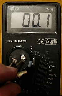 Capxon a kapacitásmérő hídon, híd kimenetén a műszer, eredmény: 0,1uF a