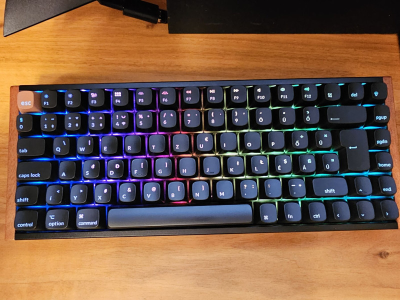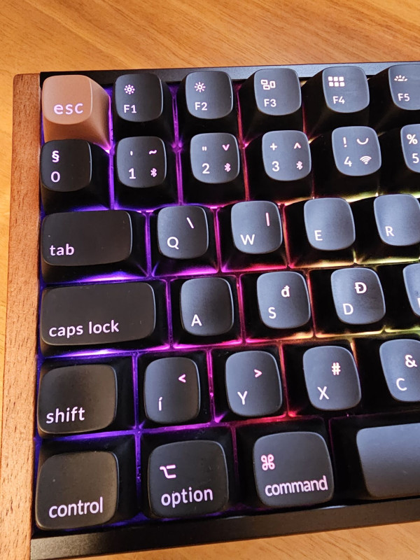 A billentyűzet: A Keychron K2 HE egy 75%-os billentyűzet mágneses kapcsolókkal. A mágneskapcsolók áttörést jelent a kapcsolótechnológiában, amely fizikai érintkezők helyett mágneses érzékelőket használ a működtetési mélység mérésére, így teljes mértékben irányítani tudjuk az egyes kapcsolók reakcióját. Hát, röviden csak annyit tudok mondani, hogy piszok jó élmény a billentyűzet használata. A K2 HE nálam járt verziója a Special Edition amiből ez a fekete és a fehér verzió létezik. Itthon csak a fekete verzió kapható. A Special Edition alumínium és fa kerettel rendelkezik a két szélén. A Special Edition OSA profilú úgynevezett double-shot PBT keycappel érkezik. A K2 HE bluetooth, 2,4 GHz és vezetékes módban tud üzemelni. A HE jelölés a Hall-effect jelölésre utal, amit nemsokára bővebben is kifejtek. A K2 HE billentyűzet akusztikája zseniális. Az előre kent kapcsolókkal, a 3,5 mm vastag EVA akusztikus habbal, az EPDM habbal és a billentyűzet belsejében található szilikon párnával a Keychron K2 HE kivételesen kielégítő, lágy és dübörgő gépelési hangot biztosít, fokozva a gépelési élményt. 22+ féle RGB világításunk van, illetve Windows illetve Mac kompatibilitásunk, és a billentyűzetünk magyar kiosztású, és ISO szabványú.