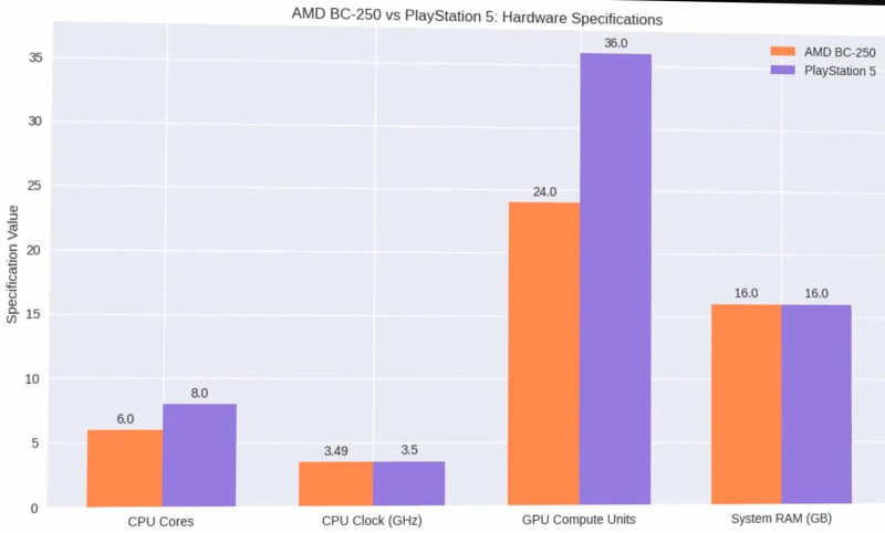 AMD a PS5 APU gyártás során termelt nem teljesen jól sikerült CPU-kat ("Cyan Skillfish"). Asrock felvásárolta ezeket és Etherum bányász kártyákat készített belőlük: AMD BC-250. PS5 APU-val összehasonlítva 6 Zen2 CPU mag vs. 8, 24 RDNA2 CUs vs. 36.
