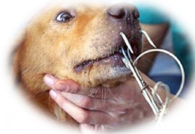 Szerencsére jól sikerült a kis ''műtét'' [A képen látható horgos fotó nem a mi kutyánkról készült, mert akkor egyikünknek sem volt se ideje, se kedve fotózgatni. A valóság véresebb volt a képbelinél, mert a fotón látható horog csak ''szimpla'' , nem pedig cápázó.]
