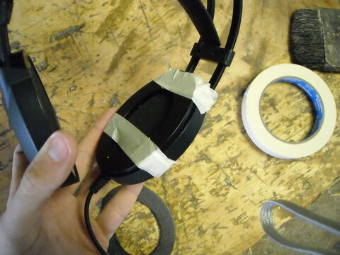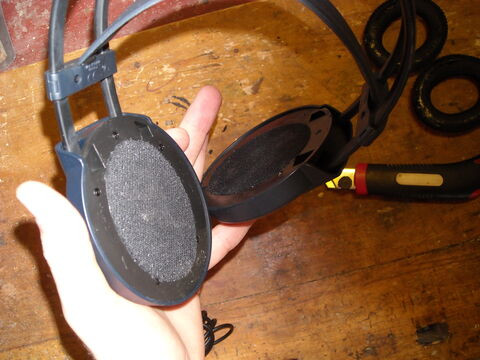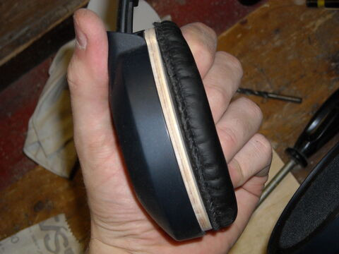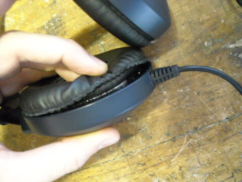 Első lépés a fülpárnák eltávolítása volt, szerencsére egész könnyen leválnak a ragasztástól, amit a megolvadt aszfalthoz (bitumenhez) tudnám hasonlítani, a fejhallgatóról lakkbenzin hígítóval tudtam véglegesen eltávolítani, a fülpárnákról pedig dörzsöléssel, bár tapadt még utána, de mivel úgyis visszaragasztom nem számított (hígítót nem akartam kipróbálni rajtuk):