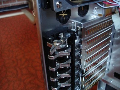 A bővítőkártyák rögzítése ilyen csatos megoldással történik.
