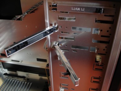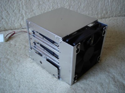 A házhoz jár egy ilyen vinyó keret is amiben 3db hdd helyezhető el. Ezek is pánttal fogathatók le aminek a belsejében szintén van egy szivacs csík a rezgések ellen.