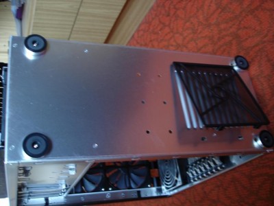 A házhoz természetesen ventik is járnak. Elöl egy 120mm 1500rpm-es, hátul egy 120mm 1200rpm-es, a tetejében pedig 2db 140mm 1000rpm-es. Legnagyobb meglepetésemre nagyon csendben végzik a dolgukat pedig már megvoltak az új ventik amire cseréltem őket. A hátsóhoz kívül-belül rács is jár, hogy a gondatlan user nehogy belenyúljon menet közben.