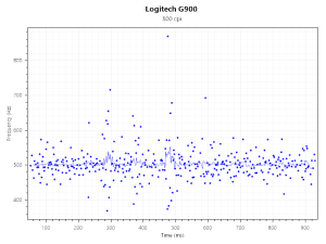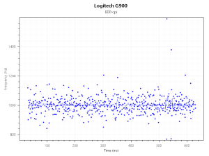 Az egér a wireless-ektől szintén szokatlan módon akár 1000 Hz-en is képes jelenteni a pozícióját. Vezetékes módban az 500 és 1000 Hz-et is stabilan tartja. Az 500 Hz vezeték nélkül is stabil, 1000 Hz-en azonban néha ki-kimarad egy poll.
