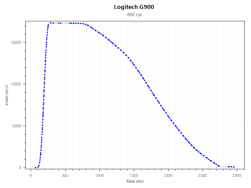 Nincs benne acceleration, minden sebességnél teljesen konzisztensen viselkedik. Videót most nem készítettem, a grafikonon ugyanaz látszik.