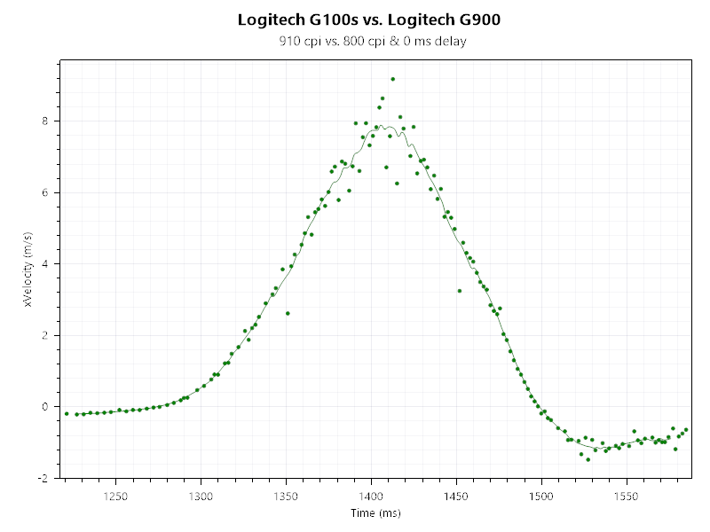 A G Pro-val szerzett tapasztalataim szerint a PMW3366 perfect control speedje minden sebességnél 7,5 m/s, ennél némileg rosszabbra számítottam az energiatakarékosság miatt. Pusztán szakmai kíváncsiságból megrángattam 8 m/s-mal, azt is tökéletesen lekövette, bármilyen DPI-n, azaz még jobban teljesített, mint a G Pro.