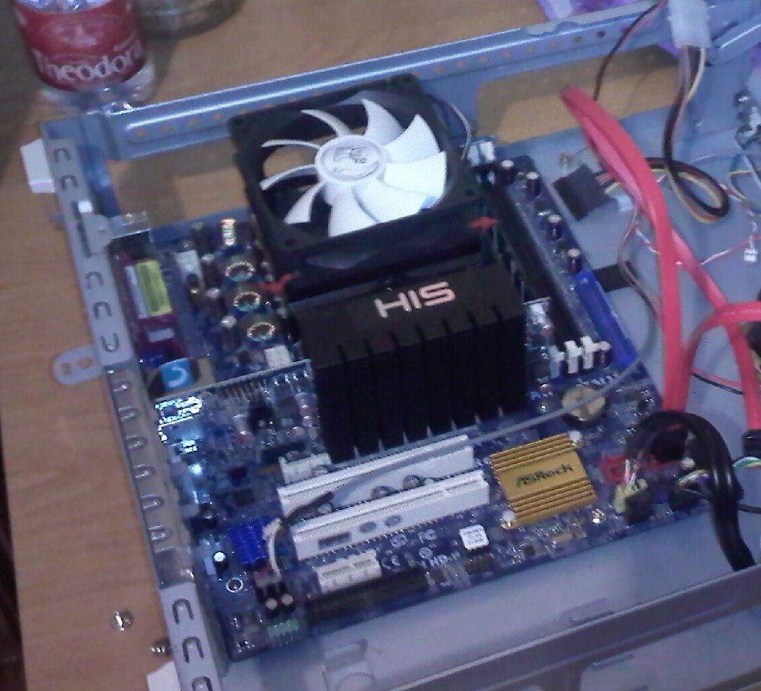 -A procira raktam a Phenom II megmaradt hőcsöves hűtőbordáját egy AC F9 TC vel megspékelve, úgy hogy a hőmérőszálat beszorítottam a borda réztalpa alá. Hátrány, hogy lassan „pörög le” a venti mert elöször a réztalpnak kell lehűlni. A tesztek kiderítik működik e. (Azért nem PWM eset raktam rá,mert amikor ugyan ebből a típusból a PWM essel próbálkoztam, az alaplap valahogy nem akarta szabályozni…)