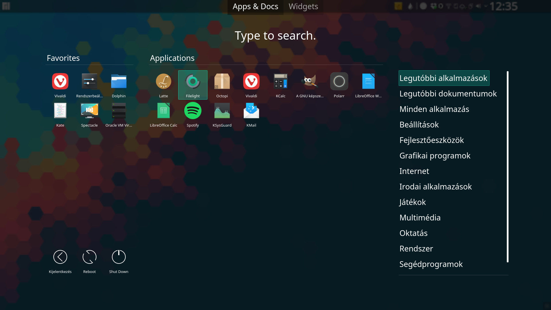 További kiváló widget a vágólap-kezelő, ezen a legutóbbi bejegyzések (szövegek, képek) találhatóak, és nem csak amit kimásoltunk, hanem az is, amit csak kijelöltünk. A KDE connect az androidos telefonunkkal való összeköttetést biztosítja, ami többek között megállítja a zenelejátszást bejövő hívás esetén (és megjelenít egy értesítést is), használható vezeték nélküli fájlátvitelre, vagy képes megcsörgetni a telefonunkat, ha nem találnánk. Sőt, SMS-ekre is válaszolhatunk a panelról a segítségével.