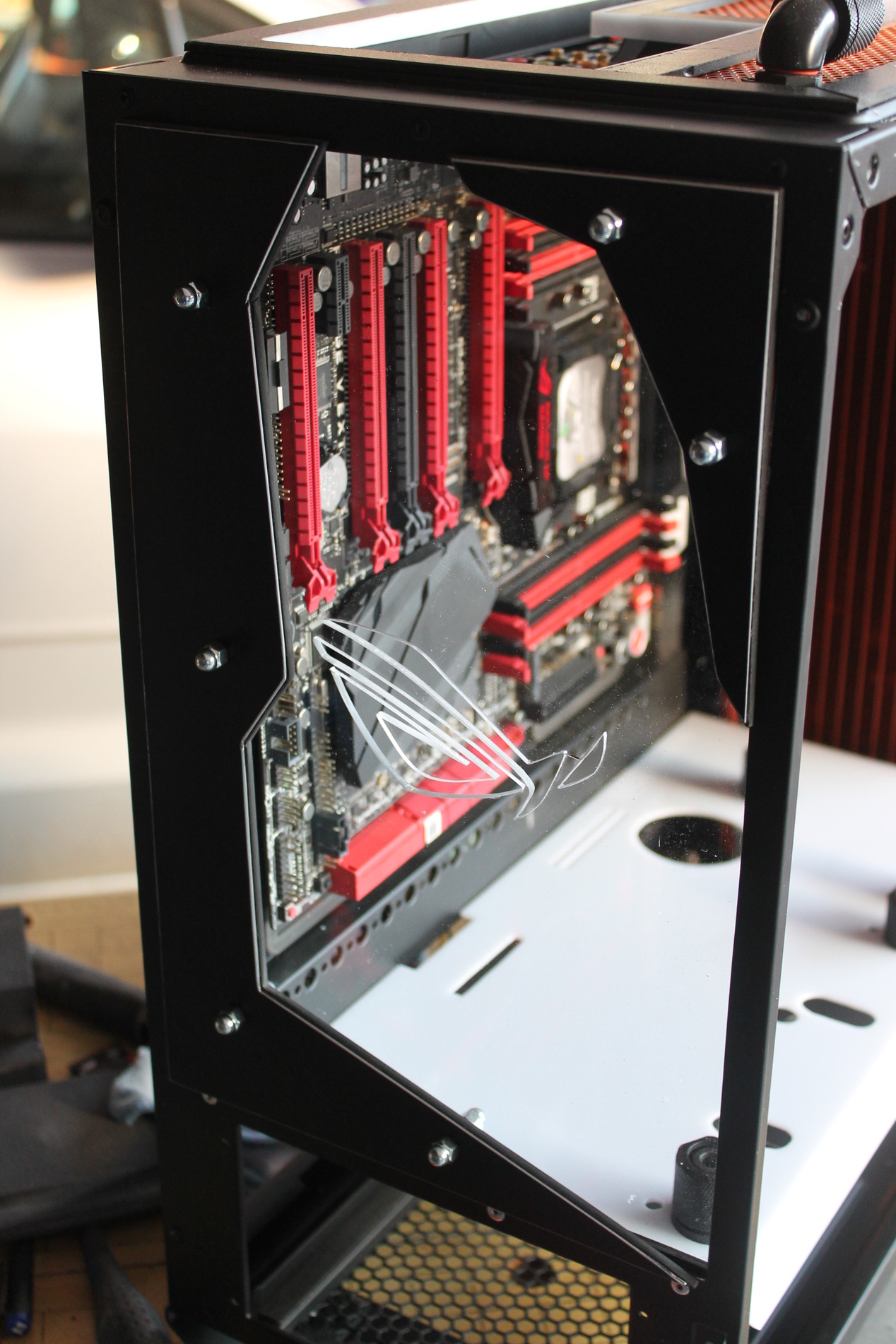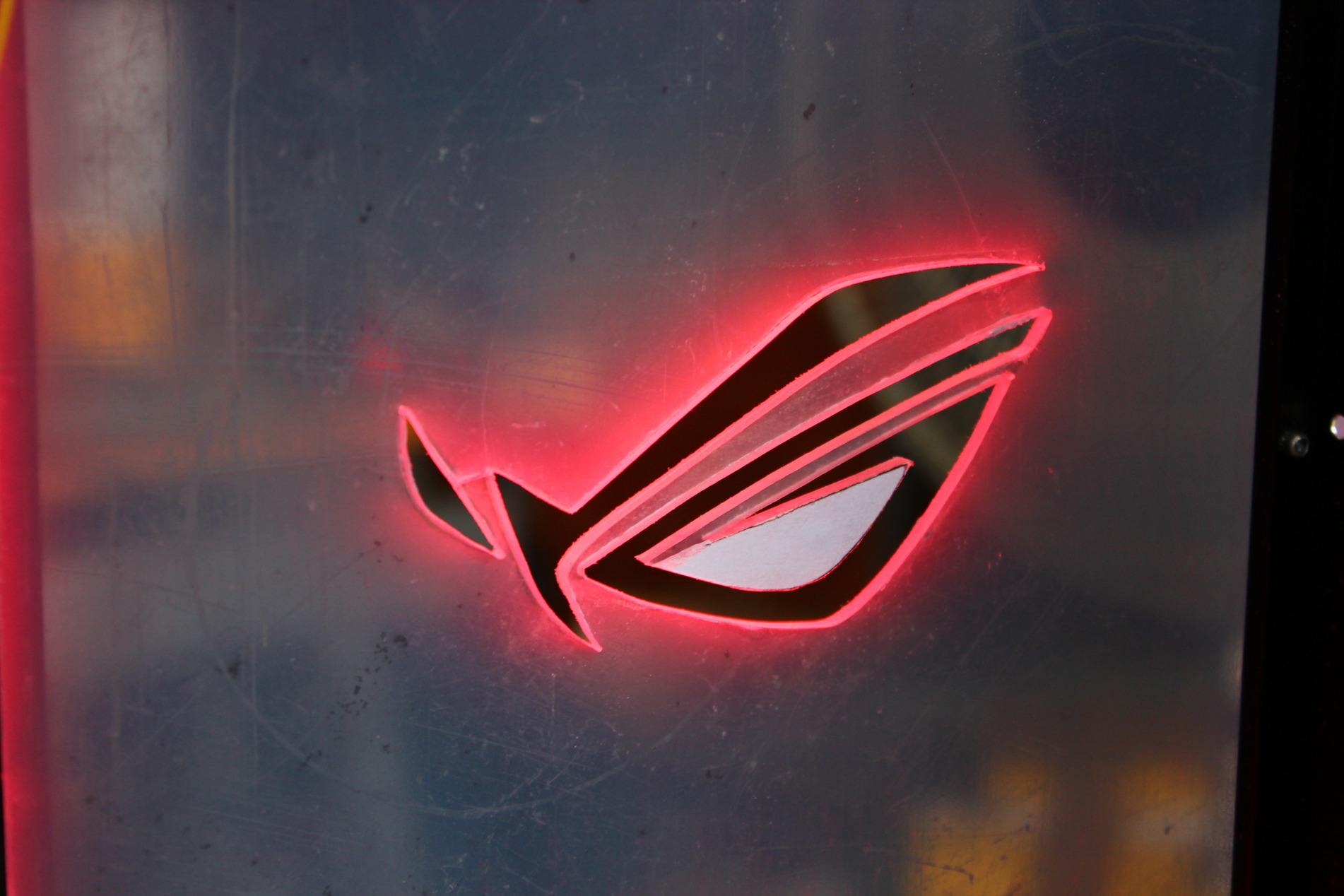 Nyilván már önmagában is valamennyire mutatóssá teszi a hátlapot ez a logó, de én nem elégedtem meg ennyivel. A házhoz kapott praktikus 30 cm hosszú mágnessel rögzíthető LED sort szépen kettévágtam, és alul felül a plexi éleihez illesztve a házhoz rögzítettem. Ezáltal kaptam egy középen pirosan izzó ROG logót. (Nem utolsósorban a bit-tech.net oldalán a hónap modja jelölésen ez a fotóm lett a nyitókép)
