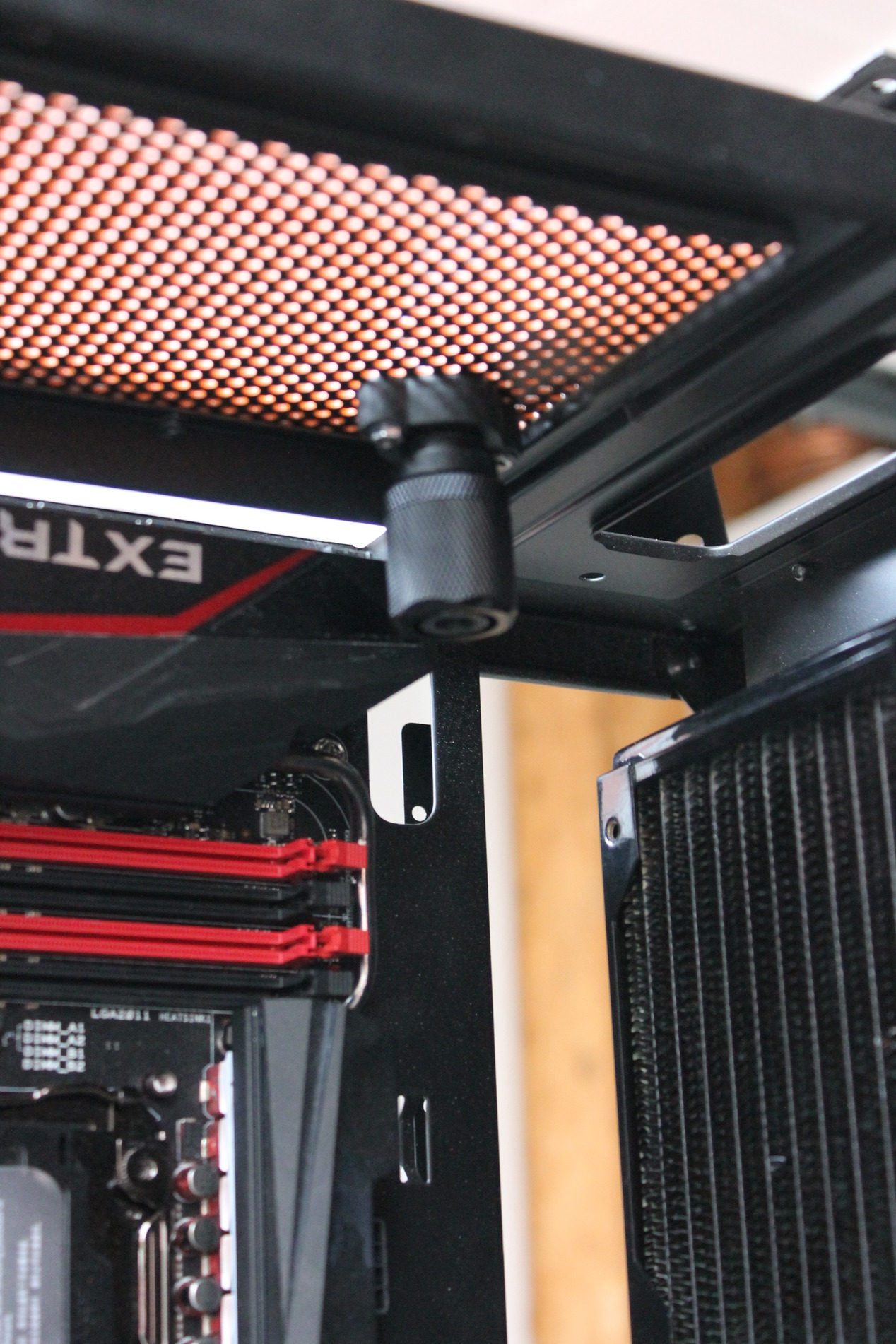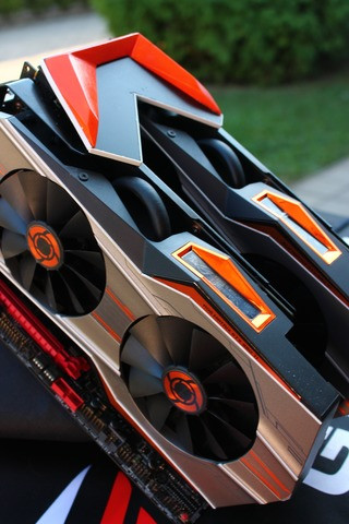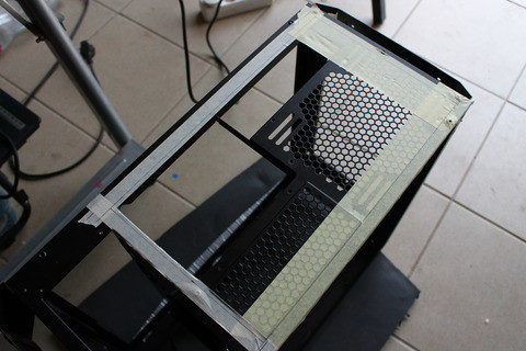 Az alaplap elfordításából következően a VGA kártyák is függőleges elrendezésbe kerültek, ami egyrészt kizárja a kártyák súlyából adódó lehajlást, másrészt lehetőséget biztosít olyan elvetemült emberek számára, mint én is vagyok, hogy kiéljék romboló és egyben építő hajlamaikat. Ez nálam a következő formában öltött testet.