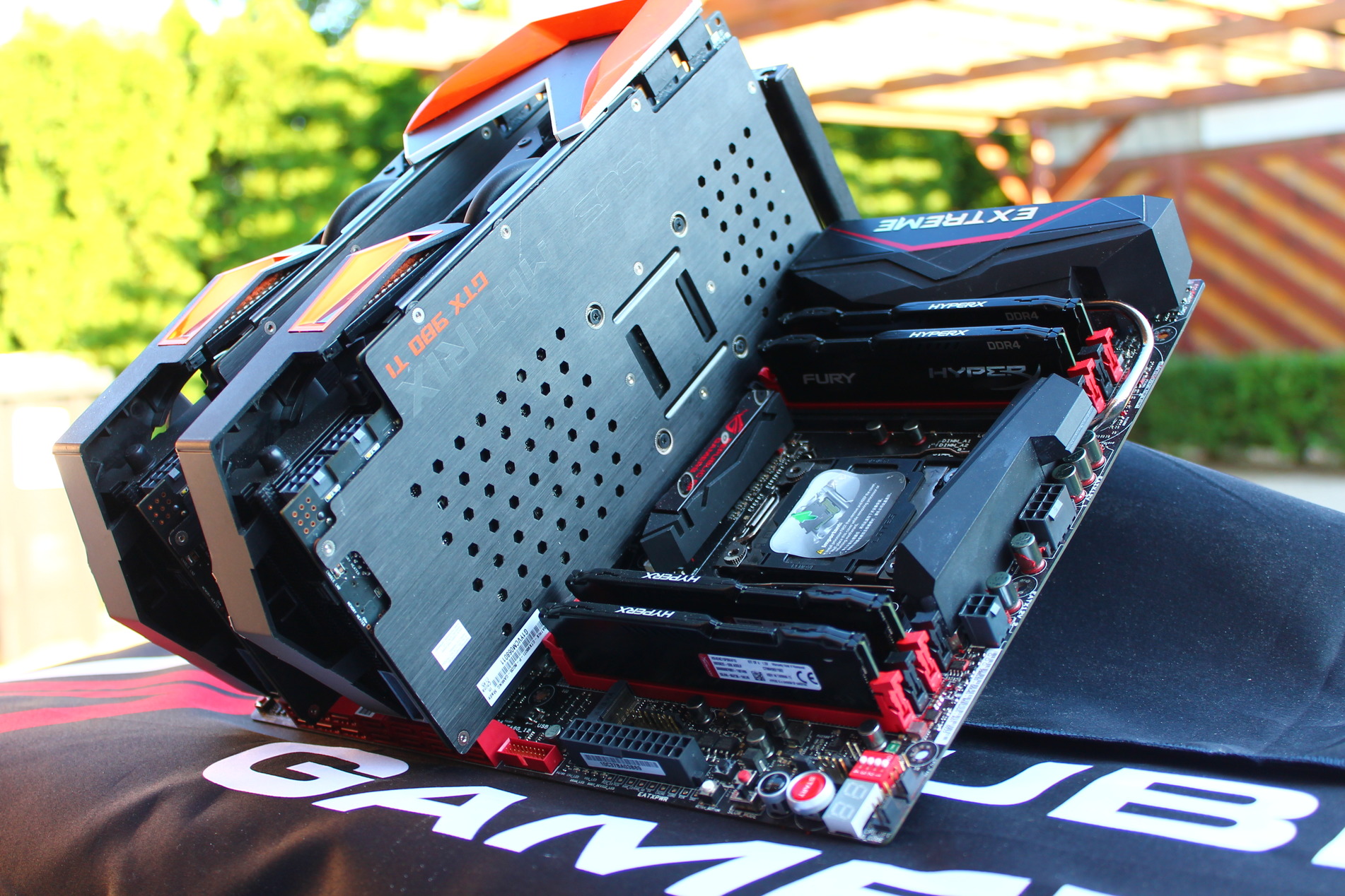 A fő szponzoromtól is az Asus Magyarországtól is érkezőben volt a legújabb X99-es alaplapuk a Rampage V Edition 10. Itt fő kritérium volt részükről, hogy az új Aura elnevezést kapott RGB vezérlésre épüljön a mód. Ehhez az egész koncepcióhoz egy korábbi munkámba már beépítésre került, majd egy átalakítást követően kikerült Mátrix Platinum kártyák kapják a fő szerepet és adják meg majd az egész mód kialakítását és nem utolsó sorban színvilágát.