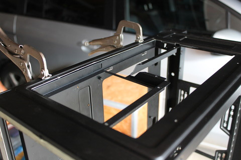 Ahhoz, hogy megfelelő effektet érjünk el, szükség van megfelelő tükrös fóliára, amit végül egy ablaküveg fóliával foglalkozó cégtől szereztem be. Ezt egy színtelen 3mm vastag plexilapra raktam fel. Itt fontos, hogy ezeket a típusú fóliákat csak vizes felületre lehet feltenni. Az elkészített tükrös részt, illetve a tükrös fóliával ellátott "reflex" lapnak megfelelő rögzítésre volt szükség, amit végül szendvics módra oldottam meg. A kivágott műanyag előlapba hátulról alulra és felülre készítettem konzolt, ami megtartja az egész keretet. A plexi lapot pedig nagyobbra vágtam a nyílásnál, így ezekre körben 6 darab furatot készítettem, amit az eredeti kerethez csavaroztam. Így 2 oldalról szendvicsként fogják közre az előlapot.