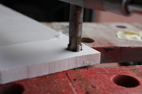 Első lépésként a tetőrészbe (új I/O panel) építettem be a csatlakozókat. Mivel a költségvetésem eléggé szűkre szabott az utóbbi időben és csak a szponzorok és meglévő anyagokkal tudok gazdálkodni, így különböző csatlakozók beszerzésére nem volt lehetőségem. Sebaj, majd ami kell, elkészítem. Elsőnek egy átvezető elemet "gyártottam", ami 10 mm vastag habosított kemény PVC lemezből készült.